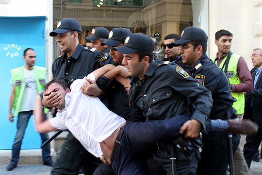 Բայրամ Մամեդովը և Քիյաս Իբրահիմովը Բաքվում Հեյդար Ալիևի արձանի վրա կարգախոս գրելու պատճառով ձերբակալվել են: Երիտասարդներին, սակայն մեղադրանք է առաջադրվել թմրանյութերի ապօրինի ձեռքբերման, պահպանման եւ իրացման հատկանիշներով: