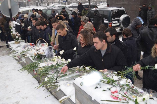 ՀՀԿ երիտասարդական կազմակերպությունը ուսանողական և երիտասարդական մի շարք կառույցների հետ այսօր այցելել է Հայաստանում Ռուսաստանի Դաշնության դեսպանատուն։ Երիտասարդները ծաղիկներ են խոնարհել դեսպանատան մոտ, մոմեր վառել՝ ի հիշատակ դեկտեմբերի 25-ին Լաթաքիա ուղևորված ինքնաթիռի վթարի զոհերի։ ՀՀԿ երիտասարդական կազմակերպության անդամ Արուսյակ Պողոսյանը նշել է, որ իրենց ցավակցական խոսքն են հայտնում ռուս ժողովրդին, այն ընտանիքներին, որոնք կորցրել են իրենց հարազատներին, հարազատներ, որոնք մարդասիրական առաքելությամբ էին մեկնում Սիրիա՝ իրենց աջակցությունը ցուցաբերելու։ «Շատ ցավալի դեպք է։ Մենք՝ որպես երիտասարդներ, Հայաստանի Հանրապետության քաղաքացիներ, մեր վշտակցությունն ու զորակցությունն ենք հայտնում բարեկամ ժողովրդին»,- ասել է Արուսյակ Պողոսյանը։ Երիտասարդները ՌԴ դեսպանատանը գրություն են թողել ցավակցությունների մատյանում։