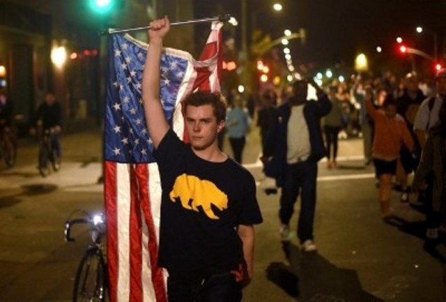 Թրամփի երդմնակալության բողոքի երթի մասնակիցները, ըստ ոստիկանության, կոտրել են խանութների եւ մեքենաների ապակիներ, նաեւ վնասել են Bank of America բանկի մասնաճյուղերից մեկի ցուցափողկը։