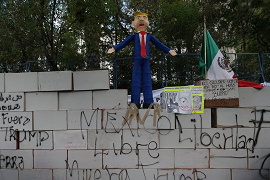 Մեքսիկայում ԱՄՆ նոր նախագահ Դոնալդ Թրամփի դեմ ցույցի մասնակիցները Մեխիկոյում ԱՄՆ դեսպանատան շենքի մոտ տուփերից կառուցել են սահմանային պատի մանրակերտը։