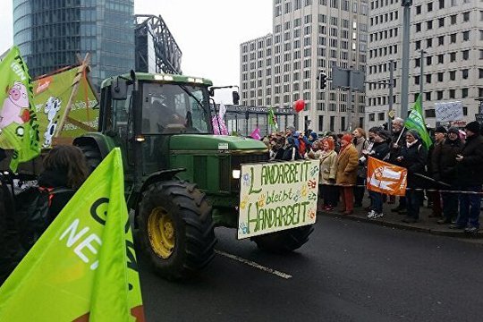 Շաբաթ օրը մի քանի հազար մարդ է հավաքվել Գերմանիայի մայրաքաղաքի կենտրոնում՝ «Մենք կուշտ ենք ագրարային արդյունաբերությունից/Մենք կուշտ ենք ագրարային քաղաքականությունից» երթին մասնակցելու: Այս մասին հայտնում է RIA Novosti-ն: