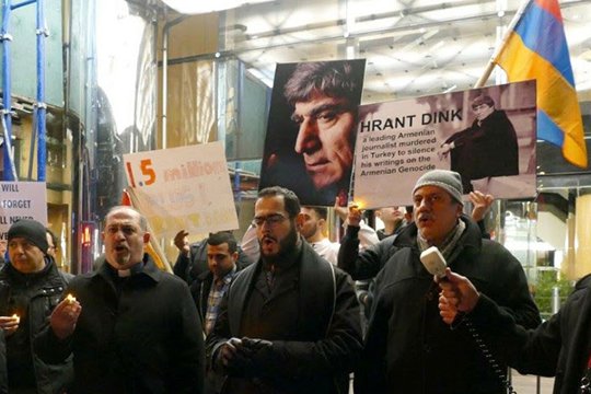 Հայկական համայնքի մի քանի տասնյակ անդամներ մասնակցել են արարողությանը Հայաստանի դրոշներով, Դինքի լուսանկարներով և տարբեր կարգախոսներ պարունակող գրություններով: Նրանք արդարության կոչերով են հանդես եկել` բղավելով. «Բոլորս Հրանտ Դինք ենք», «Արդարություն Հրանտ Դինքի համար», «Թուրքիա, ճանաչիր քո մեղքը»: