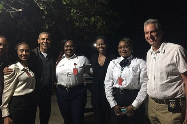 Հայտնի չէ, թե որքան են Օբամաները մնալու Կրաիբյան կղզիներում։ Նրանք հյուրընկալվել են Բենսոնի առանձնատանը։