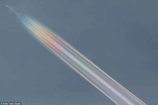 Ինչպես նշում է The Daily Mail-ը, ծիածանի էֆեկտն առաջանում է օդանավի շարժիչի այրումից: