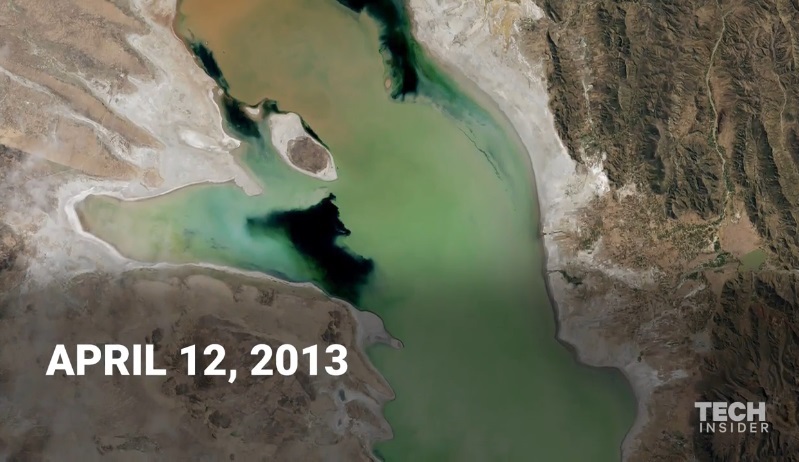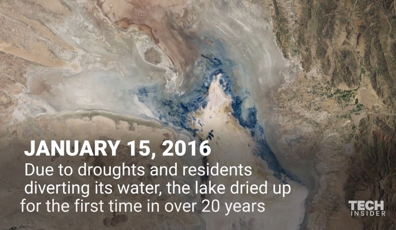 Լուսանկարները թույլ են տալիս բավականին մանրակրկիտ տեսնել այդ փոփոխությունները։ Ակնհայտ երևում է Բոլիվիայի մեծությամբ երկրորդ լիճը, որը երաշտի և մարդու գործունեության պատճառով վերջերս՝ 20 տարում առաջին անգամ լիովին ցամաքել է։ Ցուցադրված է մեկ այլ լիճ՝ Իրանում։ Ընդամենը մի քանի ամսում ջրամբարը վերածվել է կանաչից կարմիրի։ Գիտականների կարծիքով՝ մեղքն այդ դեպքում ջրիմուռներինն ու բակտերիաներինն է։