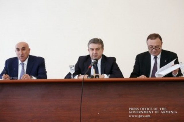 Արմավիրի մարզպետարանում Կարեն Կարապետյանը հանդիպել է նաև մարզի համայնքների ղեկավարների ու գործարարների հետ, քննարկել խնդիրներն ու զարգացման հնարավորությունները: Կառավարության ղեկավարը նշել է, որ այցի նպատակն է քննարկել մարզի զարգացման ծրագրերը, ուրվագծել հետագա քայլերը: Վարչապետի խոսքով կառավարության գործունեության 100 օրվա ընթացքում ախտորոշվել են տարբեր ոլորտների խնդիրները և ամփոփվել կատարված աշխատանքները: «Ունենալով յուրաքանչյուր ճյուղի զարգացման ծրագիրը՝ դրա հիման վրա էլ կարող ենք կառուցել երկրի զարգացման ռազմավարությունը: Այսօր ակնկալում ենք բաց, պրագմատիկ, գործնական խոսակցություն, որպեսզի մարզերի մեր գործընկերները ներկայացնեն զարգացման իրենց տեսլականը, առավելությունները, խնդիրները, պայմանավորվենք, թե ուր ենք գնում»,- նշել է վարչապետը: Կարեն Կարապետյանը տեղեկացրել է, որ կառավարությունում ամփոփվել են հինգ մարզերի այցերը, ստացված 44 ծրագրերից 34-ին տրվել է ընթացք: Գործադիրի ղեկավարի խոսքով՝ նման աշխատանքները կրելու են պարբերական բնույթ: