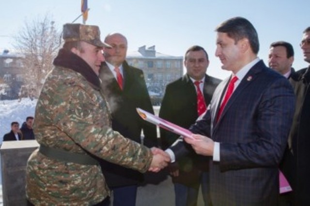 Խաչիկ Ասրյանը Կազմակերպության խորհրդանիշ՝ Արծիվ և սուր նվիրեց ՊՆ 5-րդ բանակային զորամիավորման հրամանատար, գեներալ-մայոր Կարեն Աբրահամյանին, ինչպես նաև «Լեռնահայաստանի Արծիվ» ոսկյա հուշամեդալով պարգևատրեց ՊՆ 5-րդ բանակային զորամիավորման 5 զորամասերի սպաների: Խաչիկ Ասրյանը, նաև թանկարժեք իրային նվերներով պարգևատրեց ՊՆ 5-րդ բանակային զորամիավորման հրամանատարի բոլոր տեղակալներին, բոլոր զորամասերի հրամանատարներին և մի շարք սպաների, ենթասպաների, սերժանտների, զինվորների, պայմանագրային զինծառայողների: