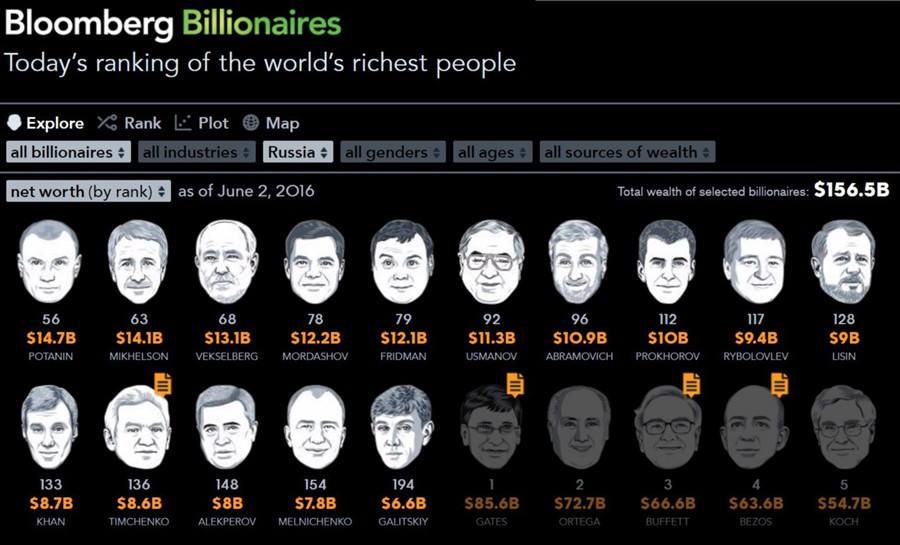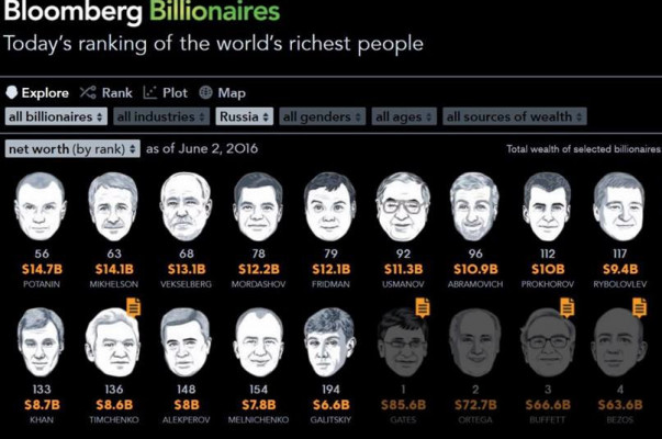 Նախկինում Forbes հանդեսը հայտնել էր, որ ԱՄՆ-ում 2016-ի նոյեմբերին անցկացված նախագահական ընտրություններում Դոնալդ Թրամփի տարած հաղթանակից հետո ռուս միլիարդատերերի ընդհանուր կարողությունն ավելացել է 29 մլրդ դոլարով: