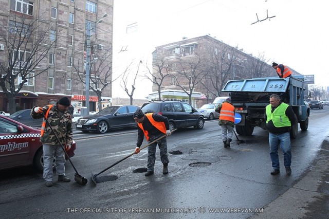 Մայրաքաղաքի երթևեկության բնականոն ընթացքն ապահովելու և վարորդներին հնարավոր անհարմարություններից ձերբազատելու նպատակով Երևանի քաղաքապետ Տարոն Մարգարյանի հանձնարարությամբ մայրաքաղաքի փողոցներում իրականացվում են ժամանակավոր փոսալցման աշխատանքներ: Առատ տեղումների հետևանքները վերացնելու նպատակով օգտագործված աղի և ավազի խառնուրդի ներգործությամբ մայրաքաղաքի փողոցների որոշակի հատվածներում առաջացած փոսերը գույքագրվել են նախապես: