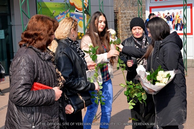 Վաղ առավոտնից գեղեցիկի ու գեղեցկության մթնոլորտով էին համակված նաև Երևանի վարչական շրջանները: Կանանց միջազգային օրվան` Մարտի 8-ին նվիրված միջոցառումների համատեքստում, տեղերում տոնական բազմաթիվ նախաձեռնություններ են կյանքի կոչվել: Նախ հասարակական վայրերում, հրապարակներում ու այգիներում երիտասարդ կամավորները ծաղիկներով ու Երևանի քաղաքապետարանի շնորհավորական բացիկներով են դիմավորել անցորդ կանանց և աղջիկներին: Շատերը ներկա են գտնվել նաև օրվա ոգուն համահունչ մշակութային հանդիսություններին, համերգներին և այլ միջոցառումներին: Առանձնահատուկ ուշադրության կենտրոնում եղել և երևանյան ջերմությունը վայելել են նաև մայրաքաղաքում հյուրընկալված կանայք ու աղջիկները: