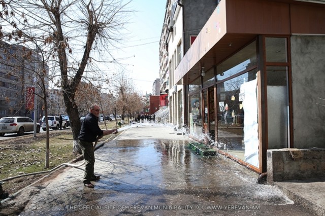 «Սանիթեք» ընկերության և մայրաքաղաքի կոմունալ ծառայությունների տեխնիկական ու մարդկային ռեսուրսների ներգրավմամբ մայրաքաղաքում մեկնարկել են փողոցների և բակերի սանմաքրման լայնածավալ աշխատանքները: Պատասխանատուների հավաստմամբ` ցրտաշունչ ձմռան հետևանքները, այդ թվում նաև փողոցներում և բակերում նախորդ տարիների համեմատ շաղ տրված մի քանի անգամ ավելի աղի ու ավազի խառնուրդը, ավելի մեծ ծավալներով աշխատանքներ իրականացնելու անհրաժեշտություն են առաջացրել:
