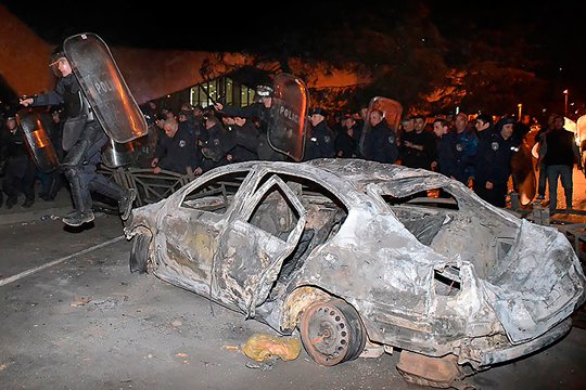 ՆԳՆ տվյալներով՝ ցուցարարներն այրել են 10 մեքենա, ձերբակալվել է անկարգությունների 40 մասնակից։ «Ռուսթավի 2» հեռուստաընկերությունը, հղում անելով ականատեսներին, հայտնում է 100-ից ավելի ցուցարարի ձերբակալության մասին։