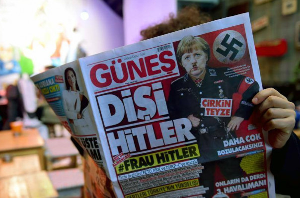 Թուրքական կառավարամետ թերթը ուրբաթօրյա համարի շապիկին տպագրել է Գերմանիայի կանցլեր Անգելա Մերկելի լուսանկարը` նացիստական համազգեստով, հիտլերյան բեղերով: