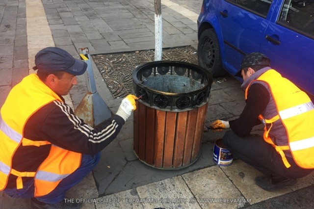 Մայրաքաղաքի վարչական շրջաններում ընթանում են «Երևան» գրվածքով նստարանների և ձուլվածքով աղբամանների արտաքին տեսքի թարմացման, ինչպես նաև ձմռան ամիսներին դրանց վնասված նմուշների նորոգման աշխատանքներ: Գործընթացը մեկնարկել է երևանյան փաղոցներում, այգիներում ու պուրակներում իրականացված համայնքային վնասված գույքի գույքագրումից հետո: Հարկ է նշել, որ ներկված գույքի վրա պարտադիր փակցվում են այդ մասին քաղաքացիներին զգուշացնող երկլեզու գրություններ: