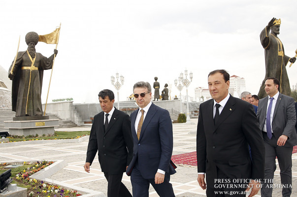 Վարչապետ Կարապետյանն Աշխաբադի քաղաքապետ Շամուհամմեդ Դուրդիլիևի ուղեկցությամբ այցելել է նաև Թուրքմենստանի անկախության հուշահամալիր և ծաղիկներ խոնարհել: