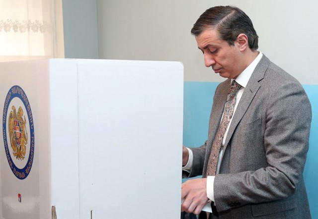 Քիչ առաջ թիվ 1/01 ընտրատեղամասում իր քաղաքացիական պարտքը կատարեց Միհրան Սուրենի Պողոսյանը, ով քվեարկելու էր եկել կնոջ և երեխաների հետ: