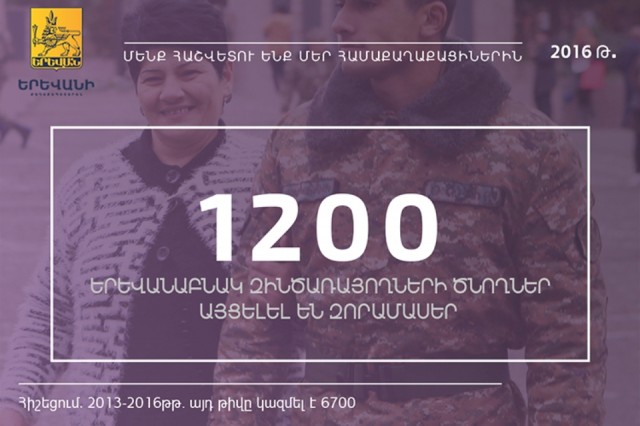 2016 թվականին Երևանի քաղաքապետարանի նախաձեռնությամբ 1200 երևանաբնակ զինծառայողների ծնողներ հերթական անգամ այցելել են սահմանամերձ զորամասերում ծառայող իրենց որդիներին: Արդեն ավանդական դարձած այս ծրագրի շրջանակում 2013-2016թթ. սահմանամերձ զորամասեր ընդհանուր առմամբ այցելել են 6700 երևանաբնակ զինծառայողների ծնողներ: