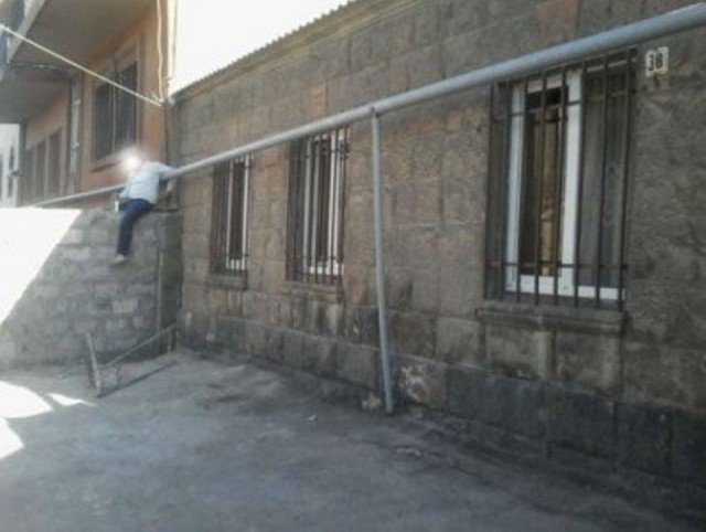 Ոստիկանություն 18:30-ի մոտ ահազանգել է Ռ.Ղ.-ի եղբայրը, որի խոսքով` նա այս քայլին դիմել է, քանի որ քաղաքապետարանից զգուշացրել են, որ տան դիմացի ցանկապատը անօրինական է կառուցված եւ ենթակա է փլուզման: