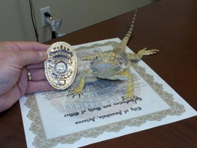 Ամերիկյան Արիզոնա նահանգի Էյվոնդեյլա քաղաքի ոստիկանները մողեսի են վերցրել ծառայության: Այդ մասին իրավապահները գրել են Facebook-ի իրենց էջում, հաղորդում է Lenta-ն: