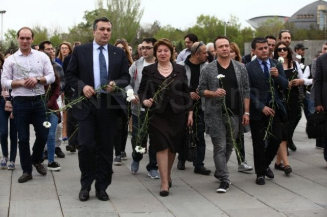 Համահայկական սիմֆոնիկ նվագախմբի երաժիշտներն այսօր՝ ապրիլի 23-ին, այցելեցին Ծիծեռնակաբերդի հուշահամալիր: