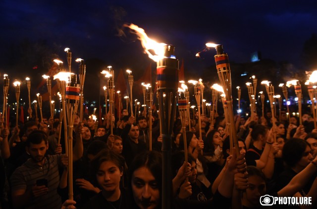 Ջահերով երթն ուներ «Իմ անունն է պայքար և վախճանս՝ հաղթանակ» կարգախոսը: