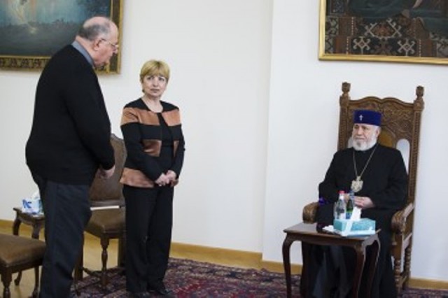 Այնուհետև կաթոլիկ եկեղեցականներին ողջունեց Ամենայն Հայոց Հայրապետը՝ գոհունակությամբ անդրադառնալով երկու Եկեղեցիների միջև առկա ջերմ, եղբայրական հարաբերություններին: Գարեգին Բ Վեհափառը հյուրերին ներկայացրեց Հայոց Ցեղասպանության հետևանքով ու խորհրդային տարիներին Հայաստանյայց Առաքելական Սուրբ Եկեղեցուն հասցված ավերների հաղթահարմանն ուղղված ջանքերը և ներկայիս գործունեությունը տարբեր ոլորտներում: