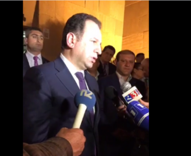 Այս պահին Երևանի քաղաքապետարանի հարակից տարածքից Պաշտպանության նախարար Վիգեն Սարգսյանն ու Երևանի քաղաքապետ Տարոն Մարգարյանը ճանապարհում են երևանաբնակ զինծառայողների ծնողներին։