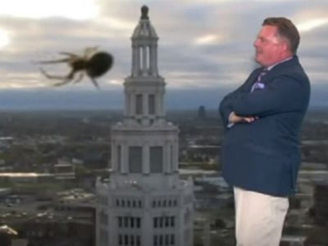 Համերը վարում էր եղանակի տեսությունը, երբ էկրանի վրա քարտեզի պատկերը փոխվել է Նյու Յորքի տեսարանով: Պարզվել է, որ քաղաքը թռչնի բարձրությունից նկարող խցիկի օբյեկտիվում սարդ է հայտնվել: Խուճապի մատնված հաղորդավարը մի կողմ է փախել՝ ձեռքերը թափահարելով: