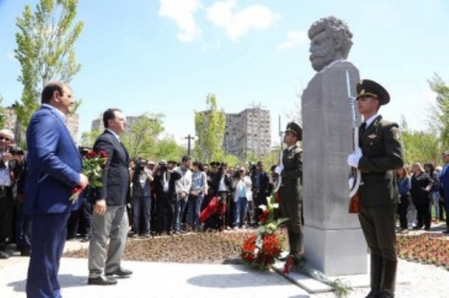 Մինչ կիսանդրու բացումը` արարողության մասնակիցները ծաղիկներ են խոնարհել զբոսայգում ամփոփված ազատամարտիկների շիրիմներին, 2014թ.-ի նոյեմբերին խոցված ուղղաթիռի օդաչուների և ապրիլյան մարտական գործողությունների ընթացքում զոհված զինծառայողների հիշատակին կանգնեցված հուշաքարերին։