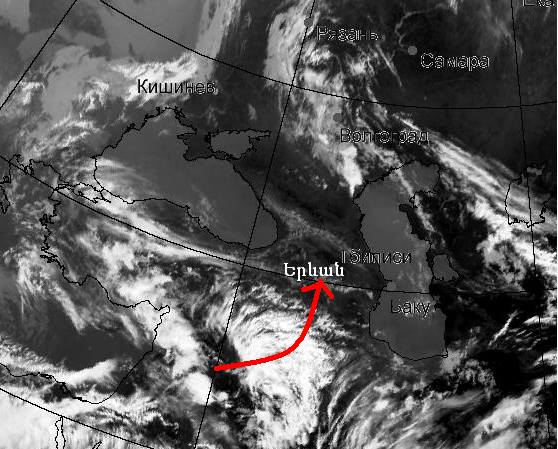 Հայաստանի Հանրապետության տարածքին ակտիվ ցիկլոն է մոտենում Միջերկրական ծովից։