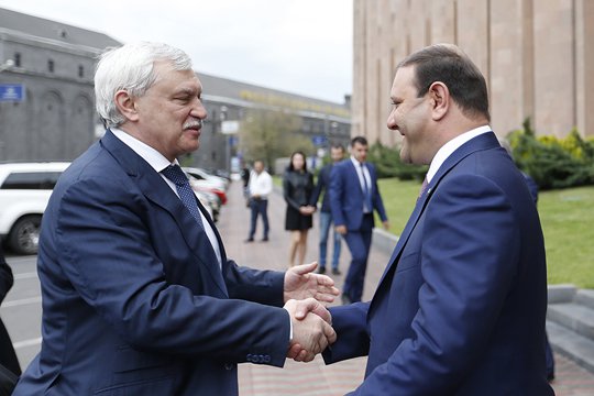 Երևանի քաղաքապետ Տարոն Մարգարյանը հյուրընկալել է պաշտոնական այցով Երևանում գտնվող Սանկտ Պետերբուրգի նահանգապետ Գեորգի Պոլտավչենկոյին: Ողջունելով գործընկերոջը՝ Տարոն Մարգարյանը համոզմունք է հայտնել, որ այս այցն իր հերթին կնպաստի երկու քաղաքների միջև առկա փոխգործակցության և գործընկերային կապերի էլ ավելի ամրապնդմանն ու ընդլայնմանը: Քաղաքապետը նաև բարձր է գնահատել երկկողմ հարաբերությունների զարգացմանն ուղղված Սանկտ Պետերբուրգի կառավարության ջանքերը՝ մեկ անգամ ևս շեշտելով, որ ՌԴ հյուսիսային մայրաքաղաքի հետ հարաբերությունները Երևանի համար առանձնակի են կարևորված՝ հատկապես հաշվի առնելով երկու քաղաքների արդյունավետ ու հաջողված փոխգործակցությունը: