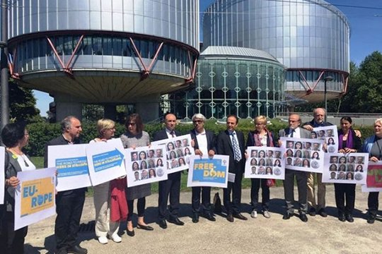 Թուրքիայի քրդամետ Ժողովուրդների դեմոկրատական կուսակցության անդամ պատգամավորները Մարդու իրավունքների եվրոպական դատարանի դիմաց բողոքի ցույց են իրականացրել՝ ուշադրություն հրավիրելով կալանավորված պատգամավորների հարցին, հաղորդում է թուրքական Diken լրատվամիջոցը: