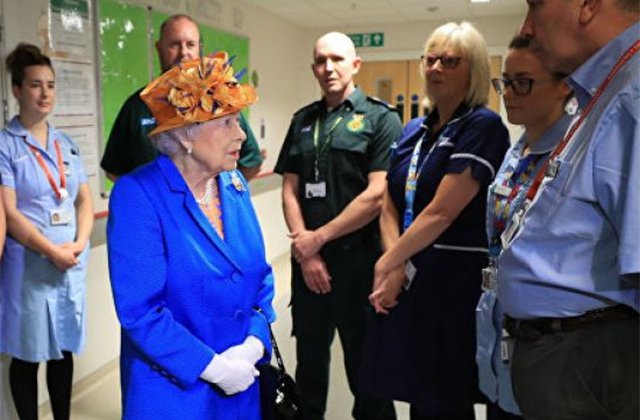 Մեծ Բրիտանիայի հեռուստաալիքները հեռարձակում են կադրեր, որտեղ վառ կապույտ վերարկուով եւ նարնջագույն բոլորագլխարկով թագուհին, ողջունելով հիվանդանոցի ղեկավարությանը, մտնում է շենք «շտապ օգնության» ընդունարանով, հաղորդել է ՌԻԱ Նովոստին: