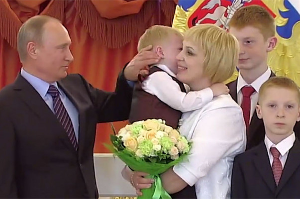 Ռուսաստանի Դաշնության նախագահ Վլադիմիր Պուտինը Կրեմլում հյուրընկալել է երկրի տարբեր մարզերից եկած բազմազավակ ընտանիքներին՝ նրանց շնորհելով «Ծնողական փառք» շքանշան: