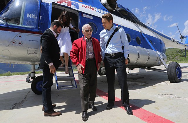 Մաեստրոյին ուղեկցում էին որդին՝ Նիկոլա Ազնավուրը, երգչի ընկերներն ու գործընկերները։