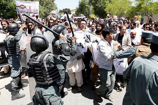 Ավելի վաղ տեղեկացվել Է, որ հունիսի 2-ին Քաբուլում մեծ թվով մարդիկ են հավաքվել ահաբեկչական գործողության վայրից ոչ հեռու, որն առնվազն հարյուր մարդու կյանք խլեց: Բողոքավորներհ պահանջում են Աֆղանստանի նախագահ Աշրաֆ Ղանիի կառավարության հրաժարականը: Reuters գործակալությունը, վկայակոչելով ակնատեսների, հայտնել Է, որ ոստիկանությունն սկսել Է օդ կրակել այն բանից հետո, երբ ցուցարարներից ոմանք փորձել են ճեղքել ոստիկանական արգելաշղթան: Հեռուստաալիքի տվյալներով՝ ոստիկանությունը արցունքաբեր գազ եւ ջրանետներ Է կիրառում բազմությունը ցրելու համար: Բողոքավորները պնդում են, որ ոստիկանությունը «միտումնավոր Է կրակ բացել իրենց վրա»: Ավելի ուշ ցուցարարներին ցրելուն միացել են զինվորականները: