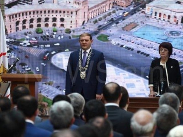 Երեւանի ավագանու հանդիսավոր նիստում, այսօր՝ հունիսի 12-ին, տեղի է ունեցել նորընտիր քաղաքապետ Տարոն Մարգարյանի երդմնակալության արարողությանը: Նիստին մասնակցել են ՀՀ նախագահը, Ամենայն Հայոց Կաթողիկոսը, ԱԺ նախագահը, վարչապետը, Երեւանի նախկին քաղաքապետերից Երվանդ Զախարյանը, հասարակական, քաղաքական, մշակութային գործիչներ: