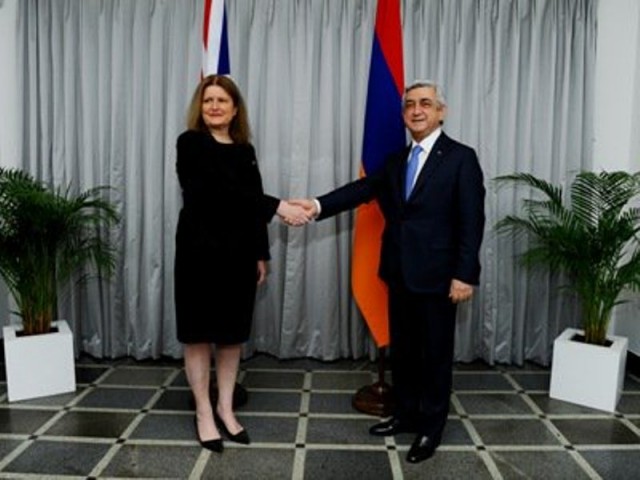 Սերժ Սարգսյանը տոնի կապակցությամբ այսօր այցելել է նաեւ Հայաստանի Հանրապետությունում Միացյալ Թագավորության դեսպանի կեցավայր` շնորհավորել դեսպան Ջուդիթ Ֆարնուորթին եւ դեսպանատան ամբողջ անձնակազմին:
