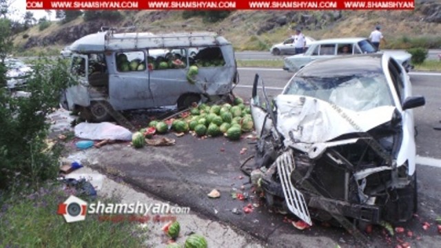 Այսօր՝ հուլիսի 8-ին, ողբերգական ավտովթար է տեղի ունեցել Կոտայքի մարզում: Ժամը 13:20-ի սահմաններում Երևան-Սևան ավտոճանապարհի 33-րդ կմ հատվածում՝ Չարենցավանի վարչական տարածքոմ, բախվել են Toyota Camry մակնիշի 51 QC 100 համարանիշի և УАЗ մակնիշի 12 SS 799 համարանիշի ավտոմեքենաները: Ինչպես դեպքի վայրից հայտնում է ֆոտոլրագրող Գագիկ Շամշյանը, բախման հետևանքով УАЗ-ը, որը բարձված է եղել ձմերուկով, կողաշրջվել է: Այն դարձի են բերել քաղաքացիները , որից հետո պարզվել է, որ УАЗ-ի վարորդը տեղում մահացել է: Դեպքի վայր են ժամանել Ճանապարհային ոստիկանության 2-րդ սպայական գումարտակի 3-րդ վաշտի ծառայողները վաշտի հրամանտար Արթուր Պետրոսյանի գլխավորությամբ: Վթարի հետևանքով 4 հոգի էլ մարմնական վնասվածքներով տեղափոխվել են երկուսը՝ Երևանի, երկուսը՝ Չարենցավանի բժշկական կենտրոններ: Վթարի մասին ՃՈ օպերատիվ կառավարման կենտրոնի պատասխանատու հերթապահ Արմեն Հարությունյանը տեղեկությունը փոխանցել է ոստիկանության Չարենացավանի բաժին, որտեղից ժամանել է օպերատիվ խումբը Չարենացավանի ոստիկանապետ Սամվել Տոնոյանի գլխավորությամբ: Դեպքի վայր են ժամանել նաև Հայաստանի քննչական կոմիտեի Կոտայքի մարզային քննչական վարչության Չարենցավանի քննչական բաժնի խումբը, բաժնի պետ Արման Զարգարյանի գլխավորությամբ: Տեղում քննչական աշխատանքները ղեկավարում է հատկապես կարևոր գործերով ավագ քննիչ Արմեն Իսկանդարյանը, ում կողմից փաստի առթիվ հարուցվել է քրեական գործ ՀՀ Քր-Օրի 242 հոդվածի 2-րդ մասի հատկանիշներով: Ոստիկանությունն ու քննչական բաժինը պարզում են մահացածի,վարորդների և վիրավորների ինքնությունը: Ըստ նախնական տեղեկությունների վթարի մեղավորը Toyota-ի վարրոդն է եղել, ով դեպի Սևան ընթանալիս բախվել է УАЗ -ի հետնամասին: Ծանուցում. Ենթադրյալ հանցանքի մեջ կասկածվողը կամ մեղադրվողը համարվում է անմեղ, քանի դեռ նրա մեղավորությունն ապացուցված չէ ՀՀ քրեական դատավարության օրենսգրքով սահմանված կարգով` դատարանի` օրինական ուժի մեջ մտած դատավճռով: