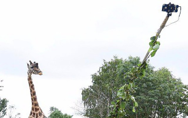Կենդանիների սիրահարները հիմա կարող են կատալերագործված եւ տերեւներով պատված սելֆիի ձողից օգտվել՝ բրիտանական Սուրեյ կոմսության Chessington World of Adventures թեմատիկ այգում բնակվող հինգ ընձուղտներից որեւէ մեկի հետ նկարվելու համար: