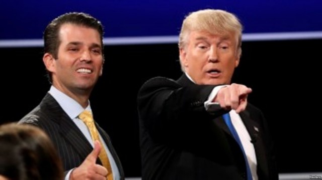Իր թվիթերի էջում նախագահը պաշտպանել է իր որդի Դոնալդ Թրամփ կրտսերի գործողությունները՝ կապված նամակագրության հրապարակման հետ, ուր մանրամասներ էին տրամադրված ռուս փաստաբանի հետ նրա հանդիպումից, ով տեղեկություն պետք է տրամադրեր ընդդեմ Հիլարի Քլինթոնի: