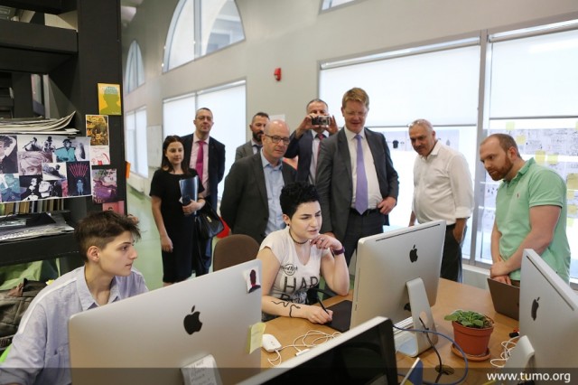 Օրերս Հայաստան կատարած աշխատանքային այցի շրջանակներում Թումո Երևանում հյուրընկալվեց ԵՀ Հարևանության և ընդլայնման բանակցությունների գլխավոր տնօրինության հարևանության հարցերով տնօրեն Լոուրենս Մերեդիթը: ԵՀ Մարդկային ռեսուրսների գծով տնօրեն Մարկ Ջոնսթոնի, Հարևանության հարցերով գլխավոր տնօրինության Հայաստանի, Ադրբեջանի, Բելառուսի և Արևելյան գործընկերության հարցերով բաժնի ղեկավար Վասիլիս Մարագոսի և պատվիրակության այլ անդամների հետ միասին՝ Մերեդիթը պտտվեց կենտրոնով Թումոյի խորհրդի անդամ Բեկոր Փափազյանի ուղեկցությամբ։ Կենտրոնի կրթական մոդելին, զանազան նախաձեռնություններին և ստարտափներին ծանոթանալով պատվիրակությունը նաև այցելեց Եվրոպական Միության և Թումոյի համագործակցությամբ նախաձեռնված «Նետոյի առասպելը» հակակոռուպցիոն խաղի և կոմիքսի ստուդիան։