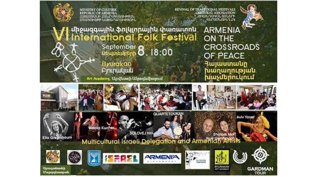 Սեպտեմբերի 8-ին կբացվի «Հայաստանը խաղաղության խաչմերուկում» միջազգային ֆոլկլորային վեցերորդ փառատոնը: Փառատոնի նպատակը ժողովրդական մշակույթի պահպանումն ու հանրահռչակումն է, միջազգային մշակութային երկխոսությունը խթանելը: