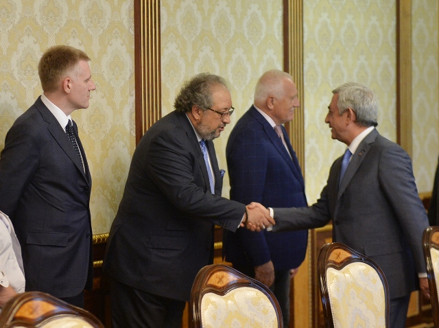 Հանդիպմանը նախագահ Սերժ Սարգսյանը հյուրերին հակիրճ ներկայացրել է անկախությունից ի վեր Հայաստանի անցած ուղին, զարգացման ընթացքը՝ ժողովրդավարության, կայացած քաղաքացիական հասարակության և շուկայական տնտեսության վրա հիմնված պետություն կառուցելու ուղղությամբ ջանքերը, առկա մարտահրավերներն ու զարգացման հեռանկարը: