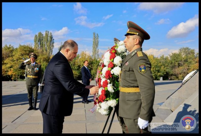 Министр Чиковани возложил венок к мемориалу и цветы к Вечному огню, увековечивающему память жертв Геноцида армян.