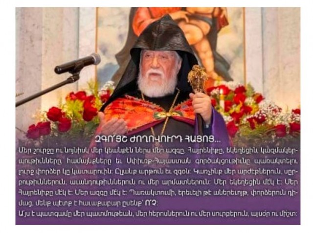 Вокруг нас и даже внутри нашей собственной жизни предпринимаются серьезные попытки расколоть нашу нацию, Родину, церковь, организации, общины и партнерство Диаспора-Армения, признаки чего мы ясно видим и в Армении, и в диаспоре. Об этом заявил Католикос Великого Дома Киликийского Арам I.