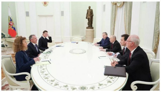 Переговоры российского лидера с американской делегацией начались около 19.40, примерно в это время были опубликованы первые кадры встречи из Кремля.