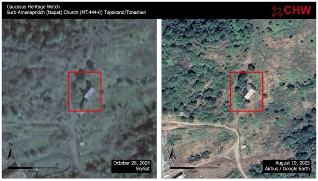 «В период с октября 2024 года по август 2025 года была демонтирована большая часть металлической кровли, установленной в ходе реставрации 2009 года», - говорится в сообщении Caucasus Heritage Watch.
