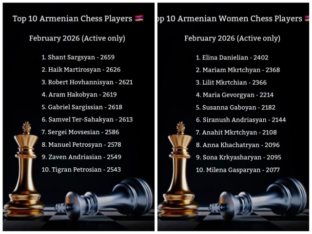 По состоянию на 1 февраля 2026 года определены 10 лучших шахматистов и шахматисток Армении. Имена лидеров обнародовала Федерация шахмат Армении. Первые места в соответствующих категориях занимают Шант Саргсян и Элина Даниелян.